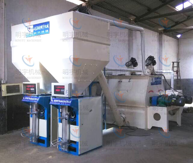 該設備主要由加料斗、螺旋上料機、臥式無重力攪拌機、成品輸送機、成品倉、自動稱量包裝機、電控箱、除塵器(選配)組成。