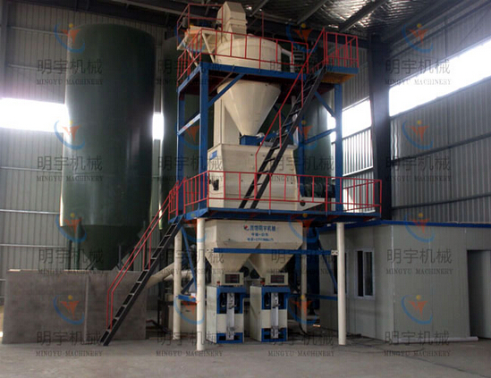該設備主要由原料儲罐、螺旋輸送機、斗式提升機、原料待混倉、臥式無重力攪拌機、成品倉、自動稱量包裝機、電控箱、除塵器、爬梯平臺支架組成。將預先設定的配方輸入電腦,水泥沙子等原料根據配比經螺旋輸送機輸送至配料秤,稱量后由斗式提升機提升至臥式無重力攪拌機,混合2-3分鐘(根據不同物料混合時間略有差別)后落至成品倉,成品倉下部配全自動稱量包裝機,將混合好的成品裝袋包裝。在包裝過程中,可以重復上面配料、提升、攪拌等過程,以實現流水線作業,提高生產效率。